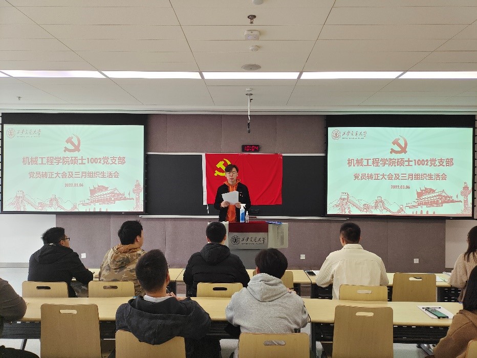 为了进一步健全和完善支部组织建设,增强支部生机与活力,2022年3月6日,中共西安交通大学koko体育·(中国)官网硕1002党支部于力行楼2-6004召开支部预备党员转正大会暨三月组织生活会。大会分别由支部书记雷杨浩同志及组织委员蒋志煨同志主持,本支部正式党员、预备党员参与此次会议。