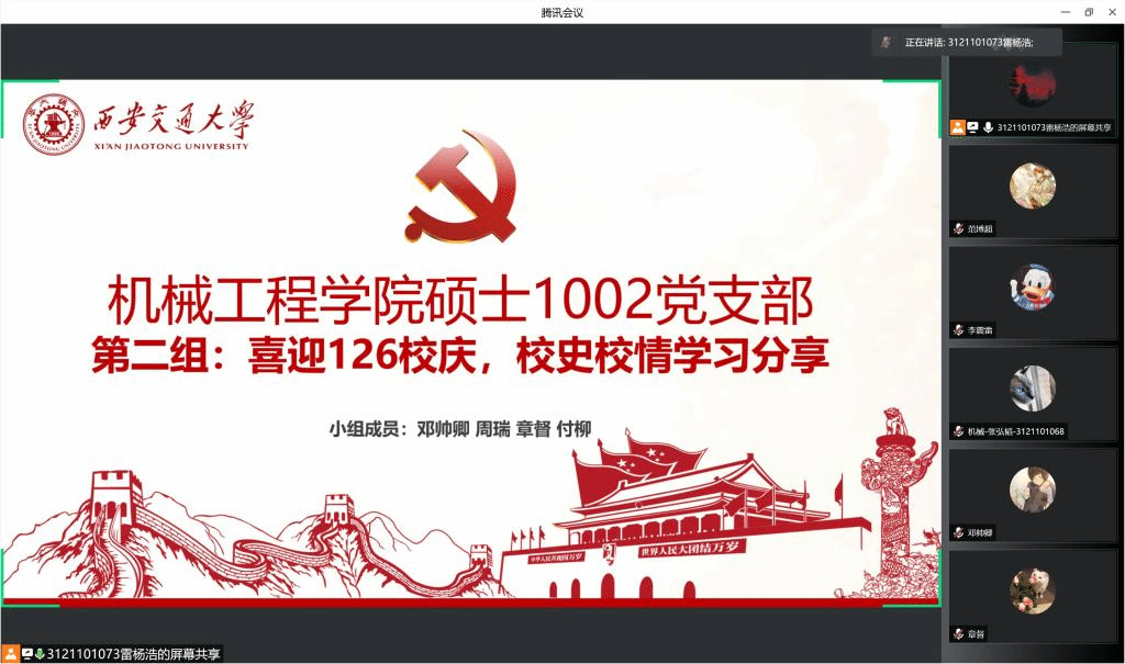 为庆祝西安交通大学126周岁生日、传承弘扬西迁精神、向同学们充分展现交大126年办学历程,本支部于2022年4月16日在线上举行了本月的组织生活会,组织支部同志学习交大历史,为母校庆生。