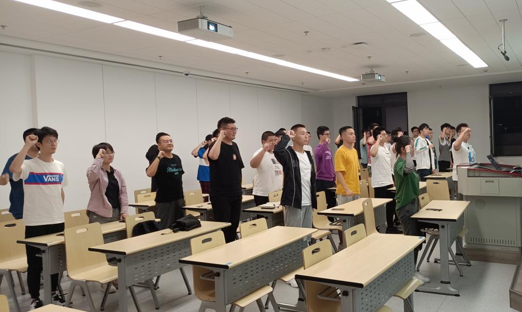 活动最后,全体同学在团支书的带领下郑重宣誓:“请党放心,强国有我”三次,在新的人生阶段开始时向党和国家许下了坚定的承诺。班级兼职辅导员弓瑨对本次团日活动进行了总结,提出同学们要树立远大理想、坚定伟大信念、增长知识、练就本领,紧跟党走在时代前列,以真才实学服务人民,以创新创造贡献国家。