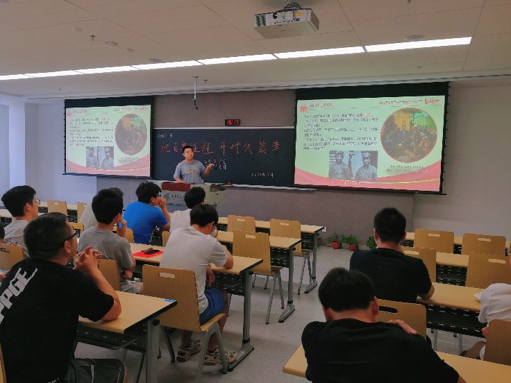 邓瑞民同学以一代伟人毛泽东在革命斗争中遇到的挑战与挫折为主线,生动幽默地为大家讲述了毛泽东同志从上井冈山到转战陕北延安时期的故事。并以此鼓励广大同学朋友能向毛泽东同志学习,在面对科研任务上的挑战时能勤于思考,善于攻克。