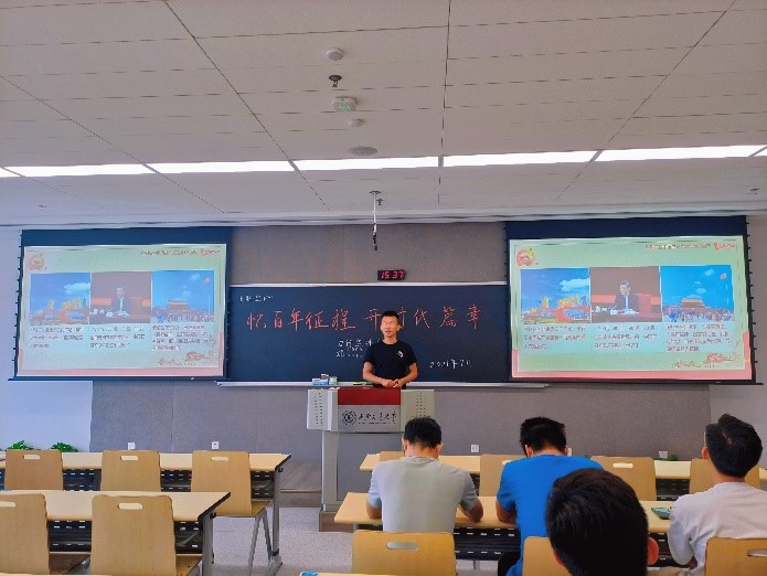 在7月23这个极富纪念意义的日子,硕0002和硕0010党支部联合开展党组织生活会议,本次会议邀请到力行宣讲团第一小组为大家进行关于“忆百年征程,开时代篇章”的主题宣讲。在宣讲过程中同学们聚精会神,认真聆听,精彩的宣讲赢得了台下的阵阵掌声。同时本次宣讲也使得“力行”宣讲团在向着打造高质量宣讲团这一目标迈进坚实一步。本次宣讲从以下四个方面展开: