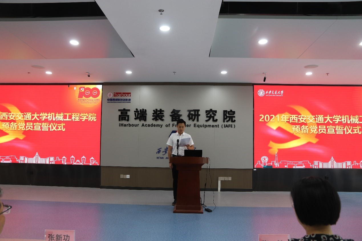 为庆祝中国共产党成立100周年,深入学习习近平总书记在庆祝中国共产党成立100周年大会上的重要讲话精神,教育引导广大学生党员坚定理想信念、砥砺初心使命,保持好党员的先进性,发挥好党员的先锋模范作用。7月1日,西安交通大学koko体育·(中国)官网举行2021年新发展党员入党宣誓仪式,参加此次宣誓仪式的有koko体育·(中国)官网党委副书记张敏,党委委员张新功,辅导员王芬、杨江坤、苏宇和2021年新发展的全体学生党员。
