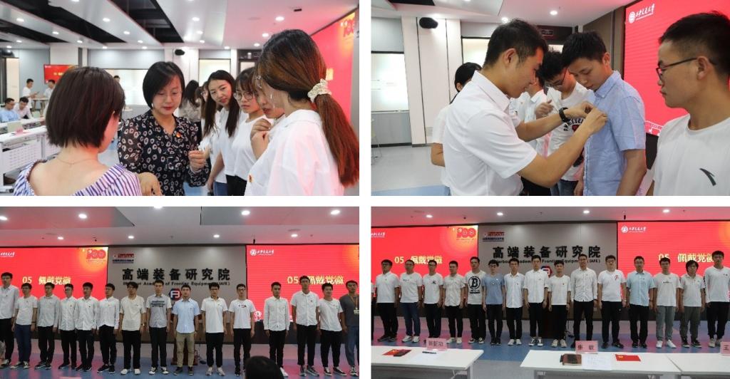 中国共产党党员徽章是亮明党员身份的重要方式。张敏、张新功、王芬、杨江坤、苏宇分别与学生党员代表张若琳、薛成、赵欢、弓瑨、陈世省为新发展党员佩戴党员徽章,以此勉励新发展党员同志亮身份、做表率,充分发挥共产党员的先进性。