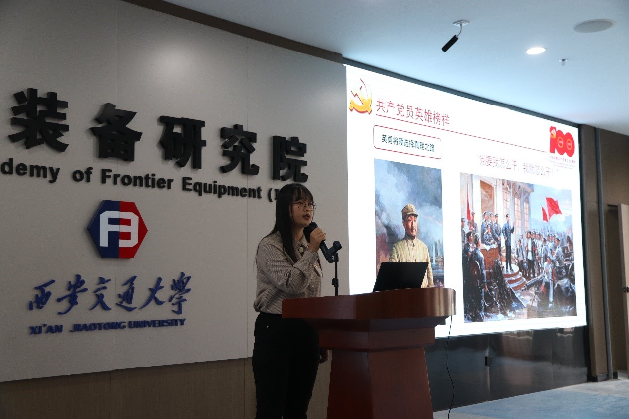 “力行”宣讲团成员张若琳进行了“胸怀千秋伟业恰是百年风华”的主题宣讲,她以党的百年奋斗历程为主线,讲述了无产阶级革命家贺龙入党、校友钱学森学成归国以及“七一”勋章获得者黄文秀的感人故事,她希望同学们坚定理想信念、强化专业技能、加强实践锻炼,践行机械学院“为国铸器智造未来”的责任与担当。