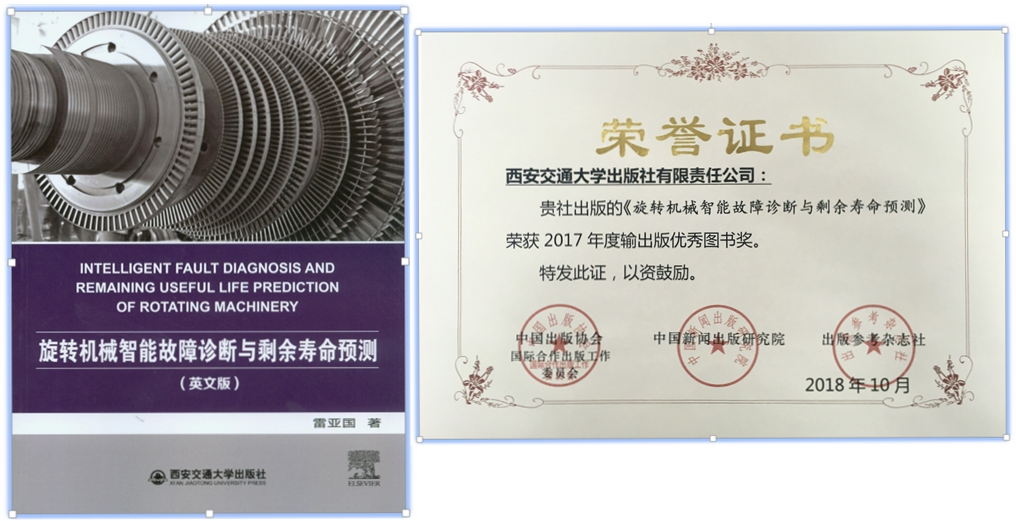 机械学院雷亚国教授英文专著荣获2017年度输出版优秀图书奖