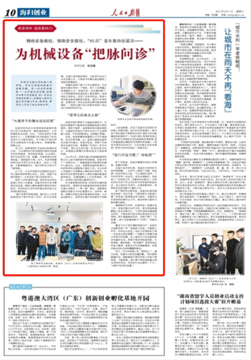【人民日报】“85后”青年教师张留洋:为机械设备“把脉问诊”