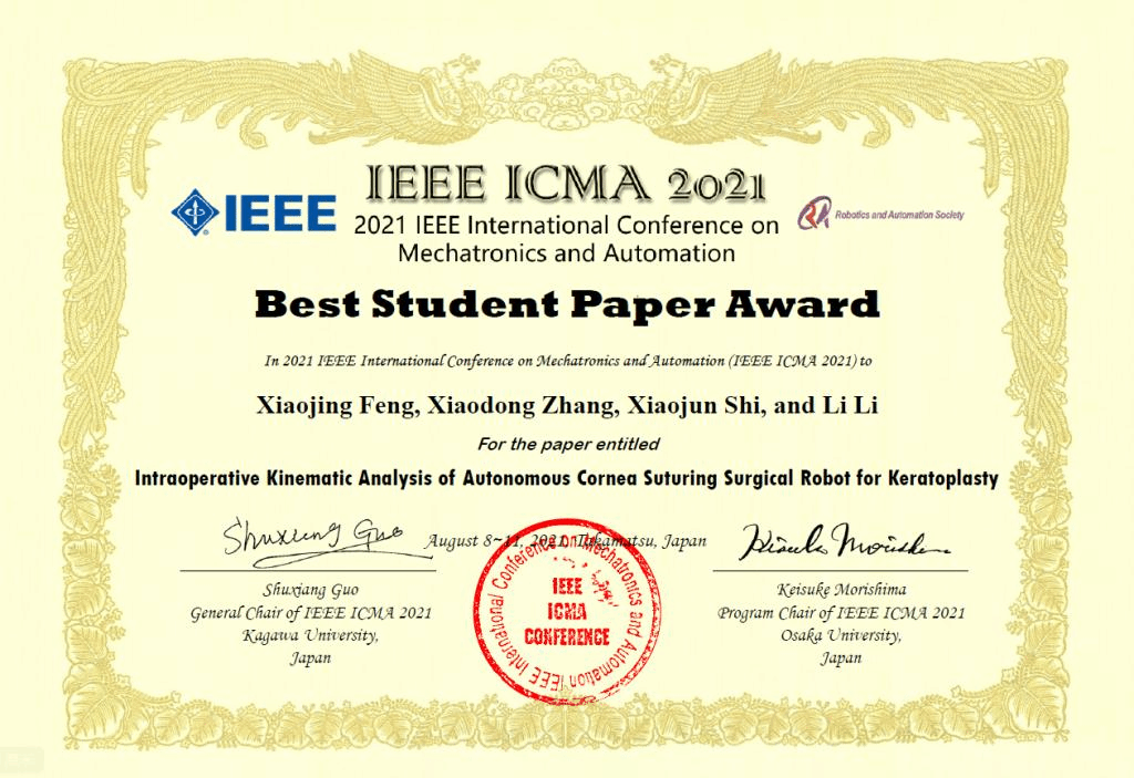由国际电气与电子工程师协会(Institute of Electrical and Electronics Engineers, IEEE)旗下最大的机器人与自动化(Robot Automation Society,RAS)分会主办的2021年度机电一体化与自动化国际会议(International...