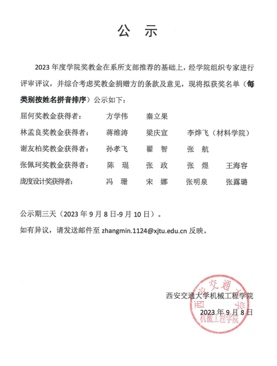 2023年奖教金公示