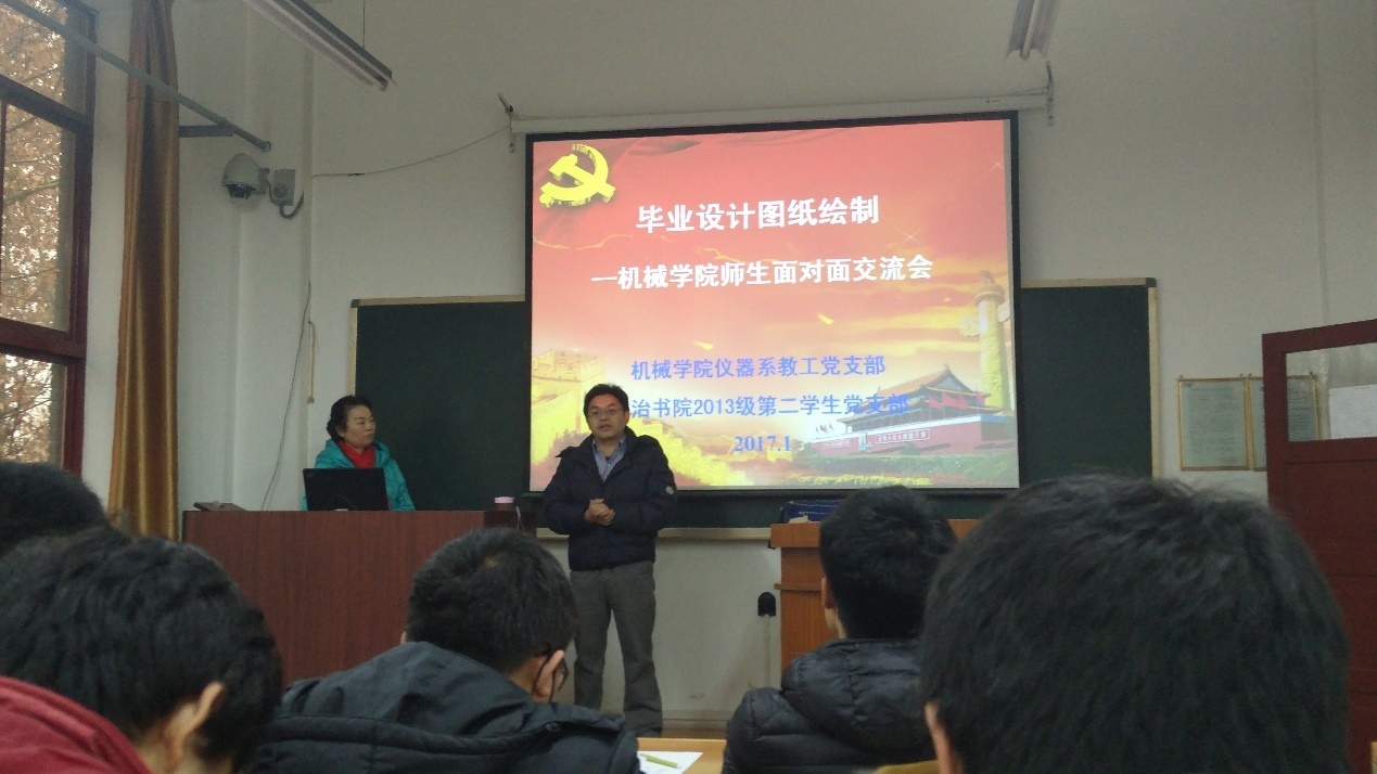 2017年1月6日,机械学院仪器系教工党支部联合文治书院2013级学生第二党支部在西二楼西411教室组织了以“毕业设计图纸绘制”为主题的支部活动。此次活动是两个党支部特色支部活动——“机械学院师生面对面”的第二期活...
