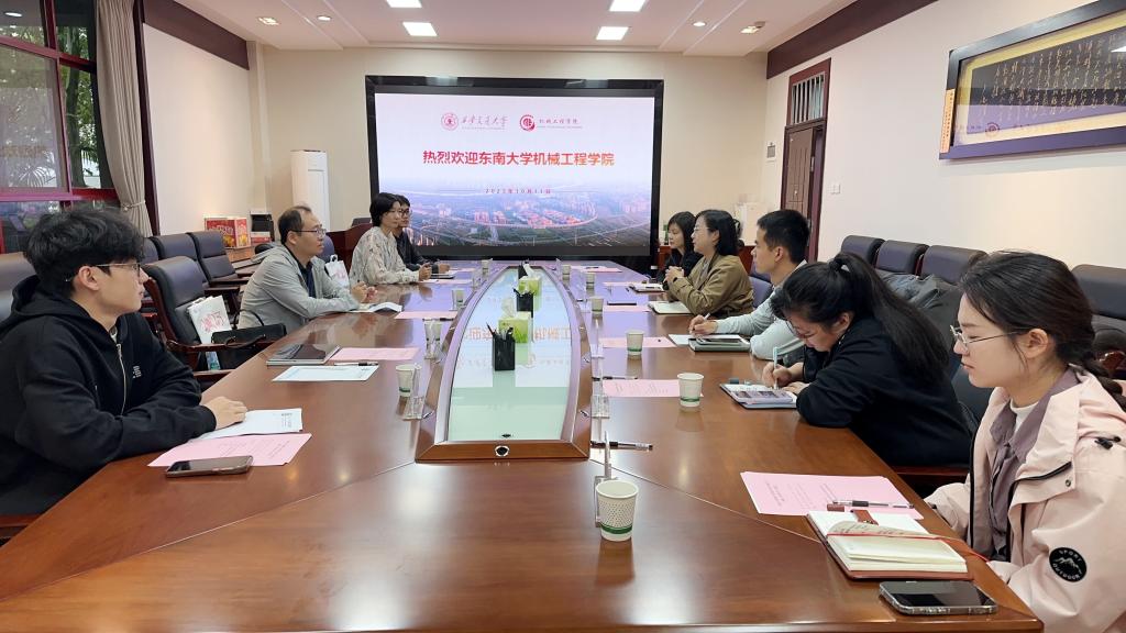 随后,张敏从学科百年积淀、拔尖人才培养体系、前沿科研布局、产教融合实践探索及学院文化建设五大维度,系统介绍了我院的整体发展情况。她重点分享了近年来在研究生思想政治教育与党建引领方面的创新举措——“师友齿轮计划”以师生共进为导向,深化情感联结;“党建担当计划”将党员培养融入科研报国实践;“五四青年培育计划”则聚焦青年成长内驱力激发,构建具有学科特色的五育并举育人生态。这些富有机械底色的品牌项目引发了东南大学团队的高度关注,现场交流气氛热烈。