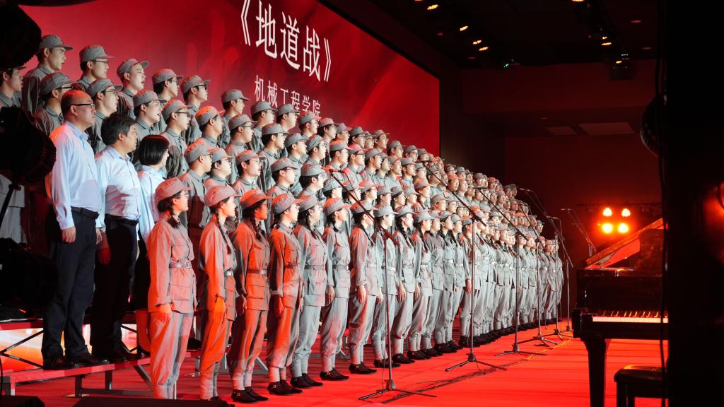 比赛当天,koko体育·(中国)官网合唱团以一首《地道战》震撼开场。雄浑有力的歌声仿佛将观众带回了那个烽火连天的年代,军民利用地道与敌人周旋的智慧与英勇历历在目。舞台上,师生们默契配合,张俊斌书记、张敏副书记、周光辉副院长站在学生中间共同高歌,展现了跨代际的文化对话与情感共鸣。