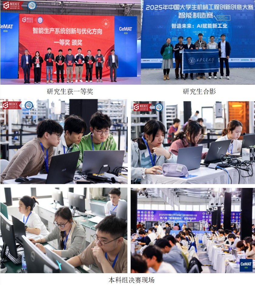 中国大学生机械工程创新创意大赛——智能制造赛创立于2018年,由中国机械工程学会主办,参赛对象为全日制在校大学生,分为专科生组、本科生组和研究生组三个组别。本届大赛主题为“智造未来:AI赋能新工业”。本科生组比赛设有4个比赛方向,决赛分两个阶段:智能装备与产线开发方向和装备与产线智能运维方向决赛在8月份举办,智能装备与产线应用方向和智能生产管控方向在10月份举办(与第25届亚洲国际物流技术与运输系统展览会(CeMATASIA)同期、同地点举办)。本科组比赛以智能产线为依托,从实际工业应用场景出发,综合考察选手应用数字化、网络化、智能化等新技术解决智能生产的复杂问题的能力。研究生组赛题以智能生产系统创新与优化为方向,从企业实际问题出发,探索具有引领性的新一代人工智能相关技术在工业领域中的深度应用,研究生组通过提交报告、现场答辩、专家组进行性能复现等方式进行评审。通过比赛激发学生的创新活力,强化学生在智能制造领域的科研攻关与工程实践能力。