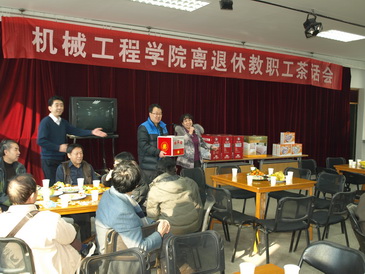 前校长史维祥教授热情赞扬了机械学院取得的成绩,并对以后的发展提出了希望。茶话会还组织了抽奖等娱乐活动,在热烈气氛的感染下,林其骏、任孝华等退休教师还即兴为大家表演了节目。