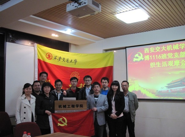 按照学校第十四届“十佳党支部及特色活动示范支部”评选活动的安排,机械学院博1116班党支部于2013年4月9日晚上19点在西二楼机械学院第一会议室成功组织开展了组织生活观摩会。会议由博1116班党支部书记郑卜祥主持,班长李兵记录,能动学院颜佳老师、彭康书院南锋霞老师应邀参加了此次组织生活观摩会,支部除出差党员外的所有党员和入党积极分子都按时参加了此次活动,现场表现积极。本次组织生活观摩会以“重内涵,比作风,信念成就中国梦”为主题,以“注重学习,重视批评,立足科研,加强支部凝聚力建设”为目的,结合博士生党支部实际,主要围绕开展批评与自我批评、学习党的十八大报告精神、学习今年全国两会精神、科研学术报告交流四个方面的具体内容展开。