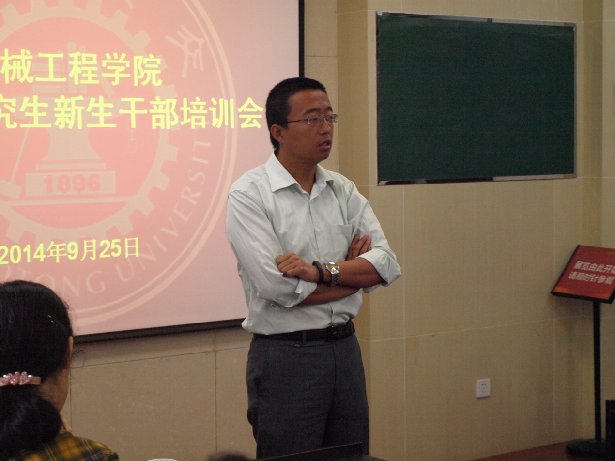 学生处处长尚春阳教授在讲话中重点向大家介绍了学生处的主要职责范围。秉着为同学服务的精神,学生处在食堂、宿舍以及困难自助等方面有着完善的保障体系,为同学们在研究生阶段的学习生活提供有力的后勤保障。尚春阳教授认为,研究生生活不同于本科生活,在认真完成应该做的科研任务之外,应该磨练自身的意志,学会处理好个人的感情问题。另外,他指出交大的学生理应培养自己在团队合作中的领导意识,在工程中不仅技术要过关,领导才能也尤为重要,要做全方位人才。