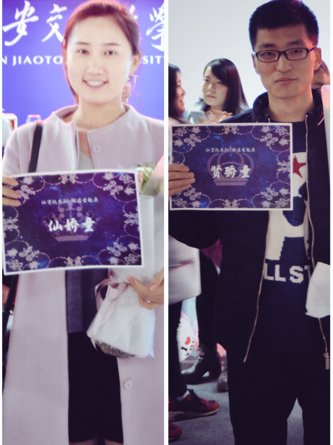 活动尾声,通过自荐他荐共有2男3女竞选本场人气之最“仙娇童&贤骄童”,全场票选后,医学部博一女生刘欢和机械学院研一男生董鹏飞获得该称号,主办方为其授予证书、献上花束和奖品。(瑜伽年卡和英卓住宿机会)