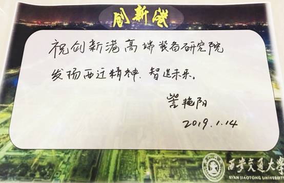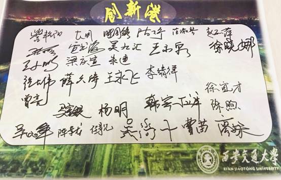 此次实地参观调研,让装备所的师生对创新港有了更为直观的感受。随着创新港的逐步建成,交大人的腾飞梦在这一载体上变得现实起来,同时,大家也再次深刻体会到“胸怀大局,无私奉献,弘扬传统,艰苦创业”的西迁精神,感受到自己肩上承担的重大责任和学科希望。所长訾艳阳教授代表全体师生送上祝福——“祝创新港高端装备研究院发扬西迁精神,智造未来”,参观师生纷纷签名以表示对交大未来的祝福和期待。大家干劲十足,将继续以双一流建设的精神投入工作学习中,为学校腾飞、为学院发展、为学科建设贡献自己的一份力!