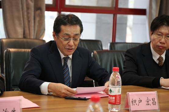 西安交通大学教育基金会秘书长赵卫滨为恩斯克投资有限公司首席执行官织户宏昌先生颁发了捐赠纪念品。