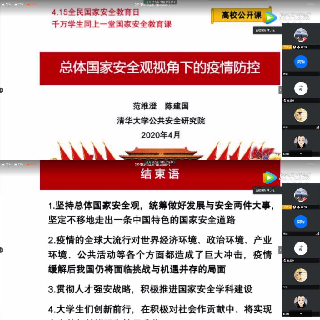 理论学习之后支部同志共同收看了清华大学公共安全研究院范维澄院士讲授的高校公开课“总体国家安全观视角下的疫情防控”。