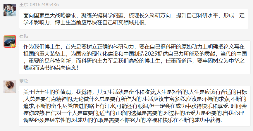 党员王东说此时就体现出团结的重要性,我们不是医生也不是医疗专家,但我们可以从擅长的领域入手,做好自己本职工作就是最好的逆行者;党员杨昂表示逆行英雄是中国文化中国家兴亡匹夫有责的一个缩影,在此次战疫中,有众多先进集体和个人冲在前线,起到了模范带头作用。而众多普通人民也在尽个人努力为战胜疫情做贡献,个人的居家隔离,消毒防护,社区、小区的志愿服务,积极响应国家/地区的复工政策,全民一心,是遏制疫情发展的重要基础。