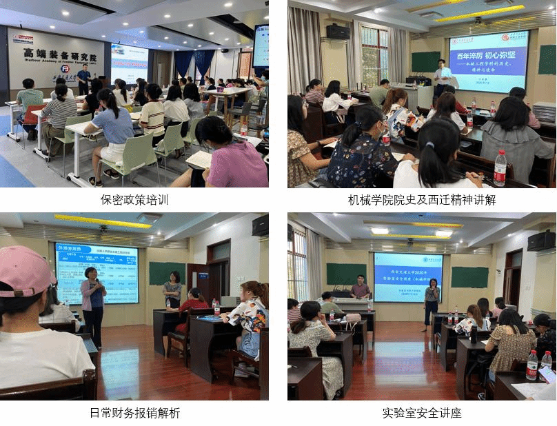 7月10日至7月22日,共安排了8场讲座,包括保密政策培训、机械学院院史与西迁精神讲解、日常财务报销解析、实验室安全讲座、项目预算及经费使用解析、资产管理政策及业务简介、设备及仪器的采购政策详解、EXCEL深度使用技巧学习;6场参观与实践,包括西安交大-米兰理工联合设计院、高算中心、网信中心IOC、交大西迁博物馆、实验室安全基地实训、分析测试中心。整个培训“干货”满满,大家受益匪浅。