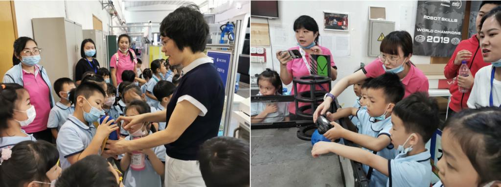 小朋友依次参观了国内首个工业4.0大学版—智能制造平台、智能制造大数据中心、机器人对抗实验室、数控加工中心、机电交叉创新实践平台等,小朋友们非常认真地观看了机器人从设计到制造成型的全过程,争先回答老师们提出的每一个问题。此外,还自己动手操控对抗机器人,近距离的感受科学的魅力。