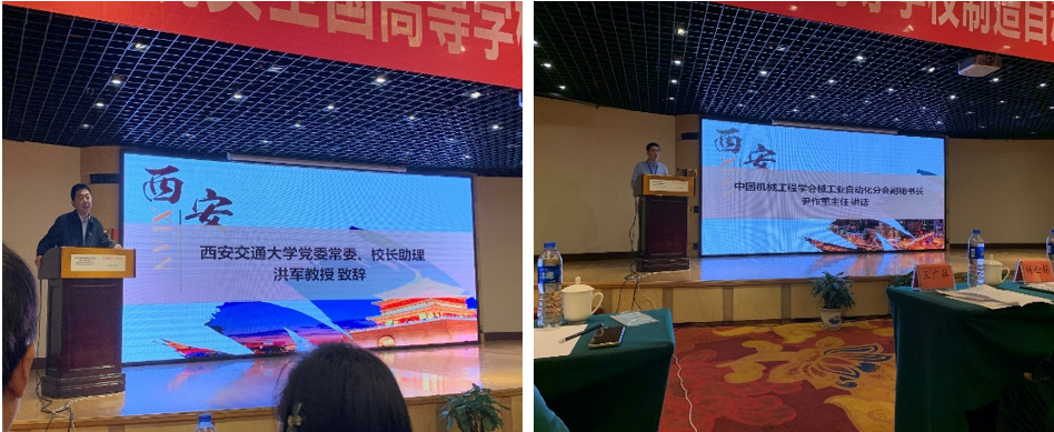 10月10日上午,会议开幕式举行。开幕式上,全国高等学校制造自动化研究会理事长、国防科技大学范大鹏教授,西安交通大学党委常委、校长助理洪军教授分别致欢迎辞;中国机械工程学会机械工业自动化分会副秘书长尹作重主任、中国振动工程学会动态测试专业委员会主任委员杨世锡教授分别致贺辞。