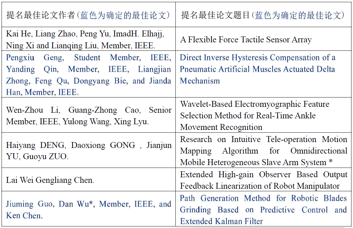 本次会议共接收作者投稿111篇论文,通过初次函评,共接受81篇论文发表,同时还从中优选了10篇论文作为最佳论文奖的候选论文,于10月11日下午分两组进行了公开发表答辩评审。会议评奖委员会由刘连庆研究员担任主席,王志东、胡豁生、汤宝平和徐海波四位教授作为委员构成,最终选出6篇论文为最佳论文提名奖,并从中确定耿鹏秀等作者发表的论文荣获大会最佳学生论文奖,郭九明等作者发表的论文荣获大会最佳会议论文奖。大会主席张小栋教授和评奖委员会主席刘连庆研究员共同为6位最佳论文提名奖作者颁发了证书,大会荣誉主席洪军教授为最佳论文奖作者颁发了证书。