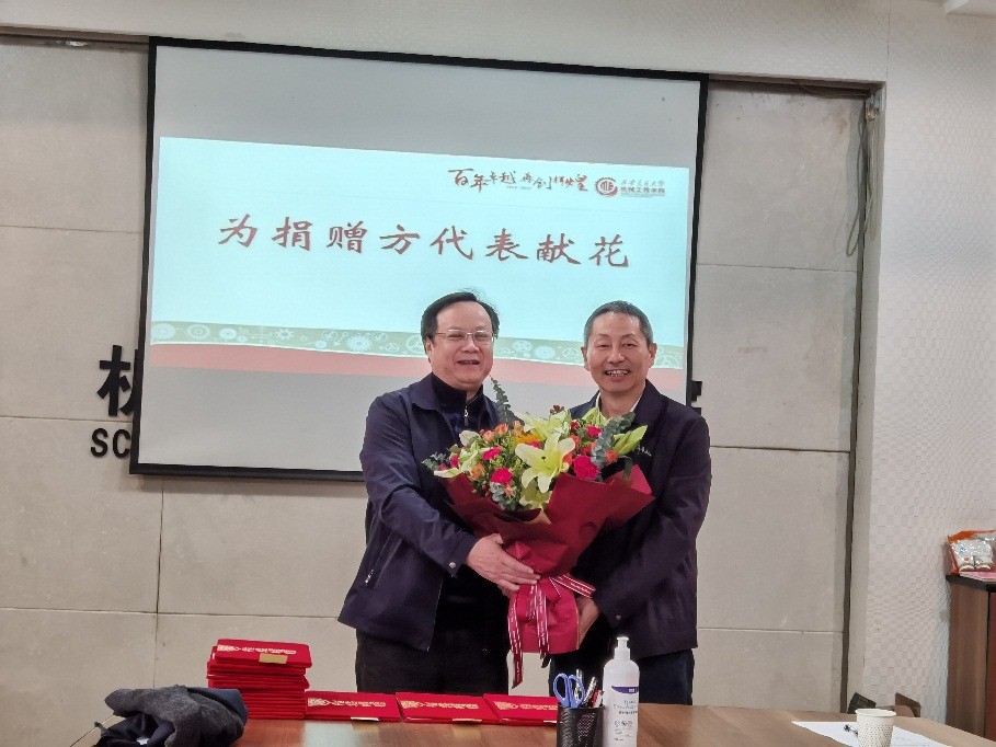 随后,王朝晖书记宣读获奖人员名单,为捐赠方代表蒋克俭老师献上鲜花,并为获奖人颁发荣誉证书。