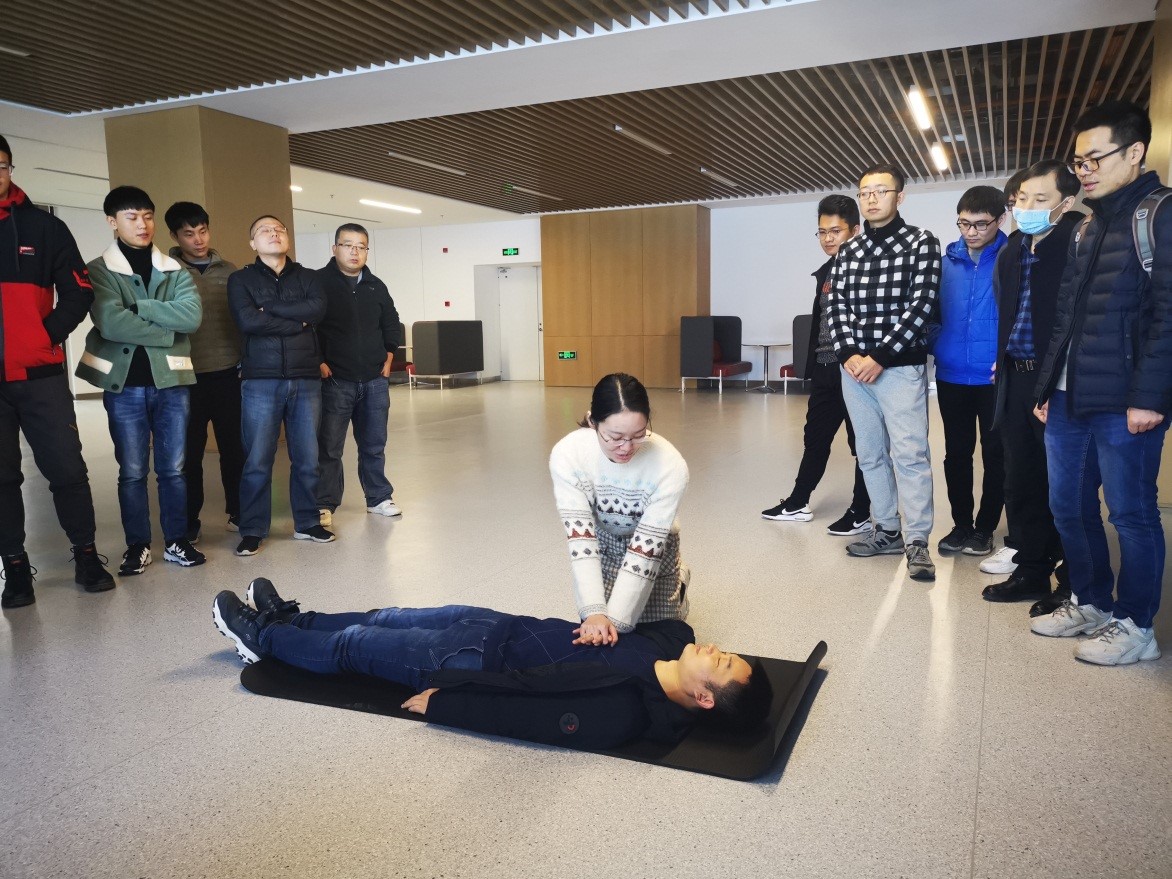 最后,王家欢老师向大家详细示范了心肺复苏过程中“轻拍师生判断意识,互救报警、清除口腔异物、心肺复苏、人工呼吸”等应急救援技能。示范后,参演老师手把手参与学习,让演练更具有了现实意义。