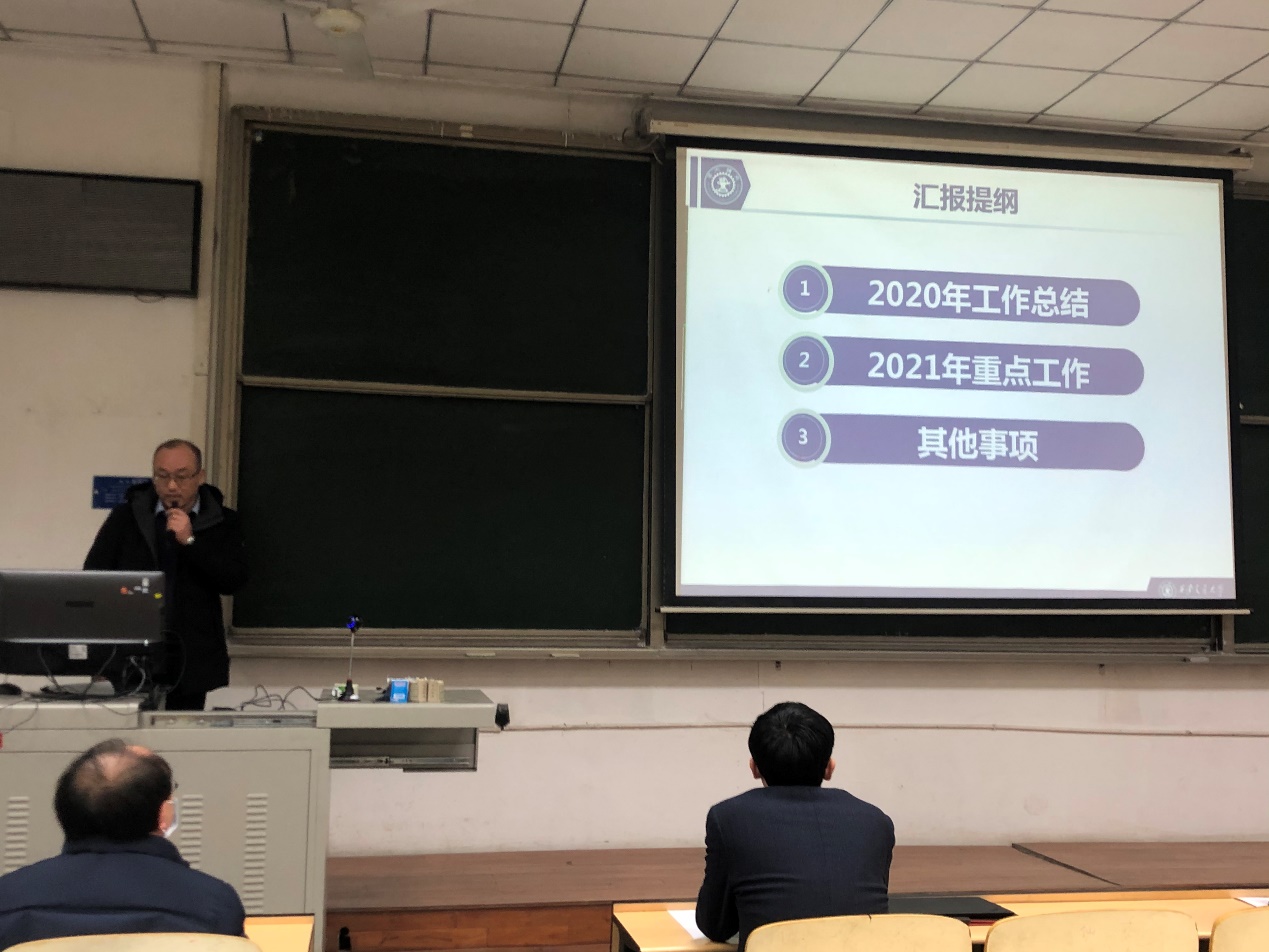 周光辉副院长从在校研究生总体情况、生源质量、研究生内涵培养、教材建设、竞赛和论文获奖情况等方面总结汇报2020年的工作,强调要重视过程管理,全面提升研究生培养质量,指出2021年重点工作计划,一是全面保障与提升研究生生源质量;二是以提升研究生创新能力为目标,推进课程教学改革;三是完善研究生课程实验与科研平台建设;四是探索完善研究生论文质量评价机制,保障论文质量。