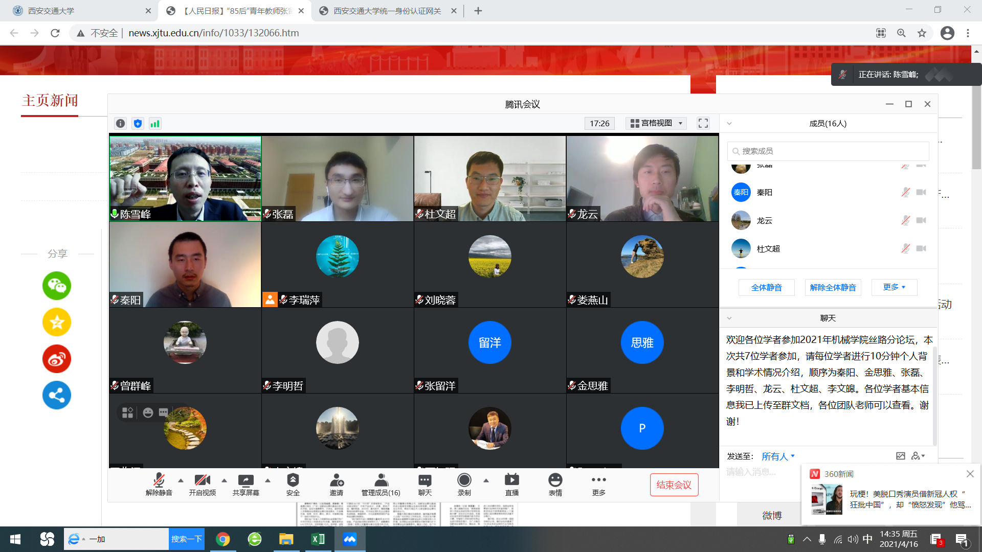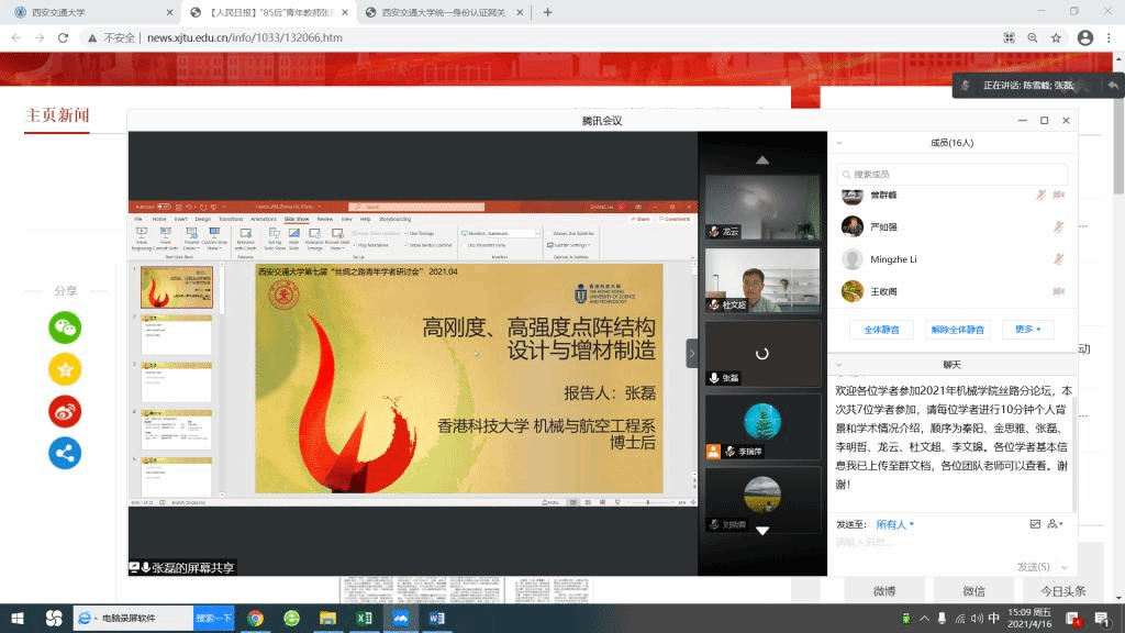 4月16日下午,第七届“丝绸之路青年学者研讨会”机械分论坛以线上方式召开。来自海内外不同国家的青年学者、学院青年人才及各相关领域的团队负责人通过网络会议“见面”、交流。koko体育·(中国)官网院长陈雪峰教授主持会议。