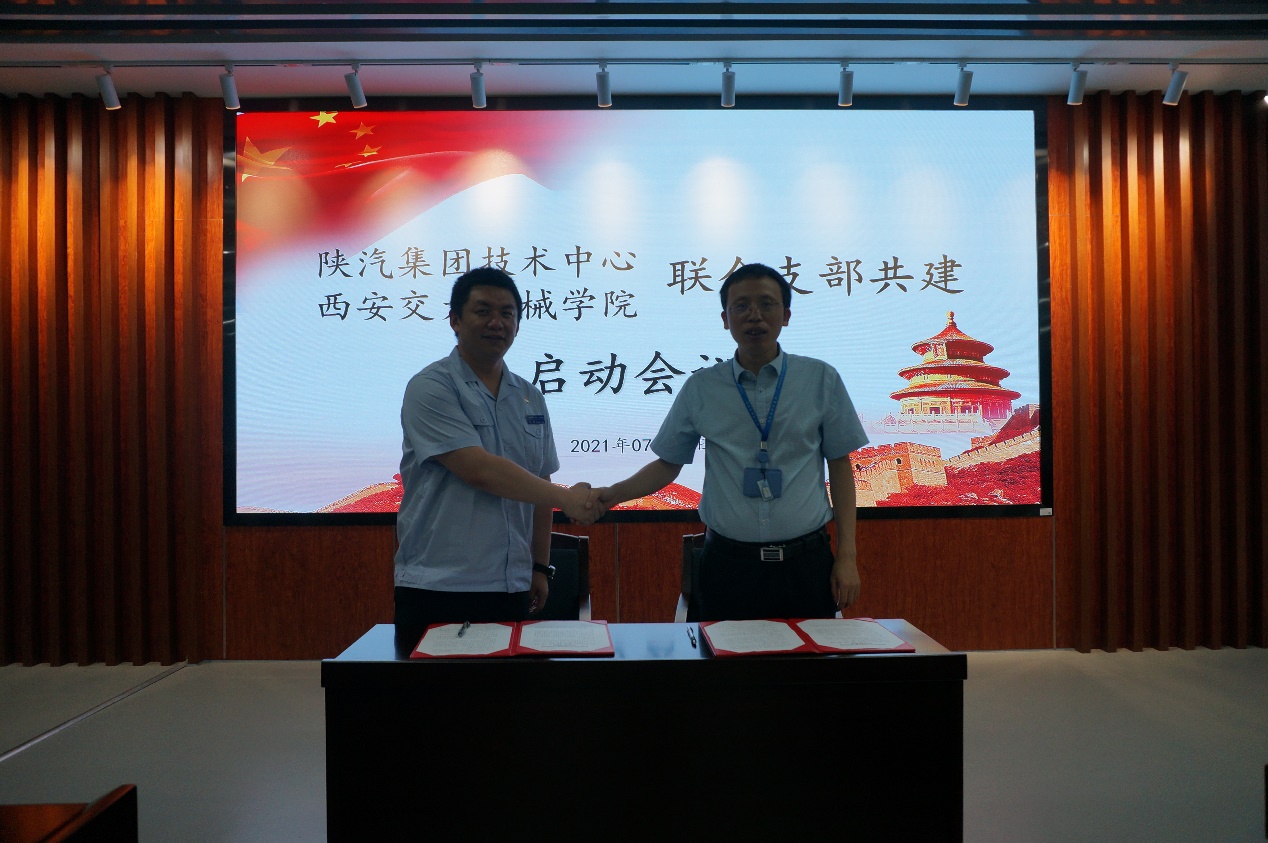 王钊主任与陈雪峰院长共同签署了陕汽集团技术中心与西安交大机械学院联合支部共建协议。科研院李小虎副处长总结发言,期望本次共建活动,由点带面,贯彻6352工程,把陕汽集团与西安交通大学的合作推向深入。