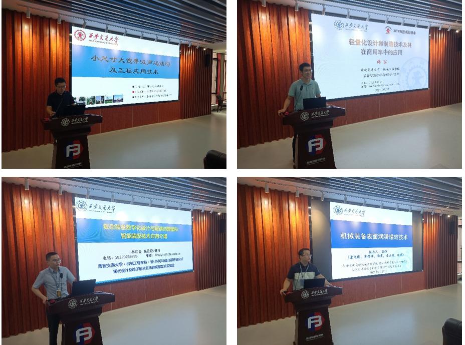 结合研究所技术成果与陕汽集团企业需求,装备所刘崇锐、韩宾老师,设计所林起崟、张辉、李乃鹏老师分别进行了:机械、声学超材料技术、汽车轻量化设计及制造技术、数字化装配与装配关键技术、机械装备表面润滑增效技术、机械装备健康监测与智能运维5个方面的专题技术报告。