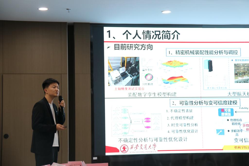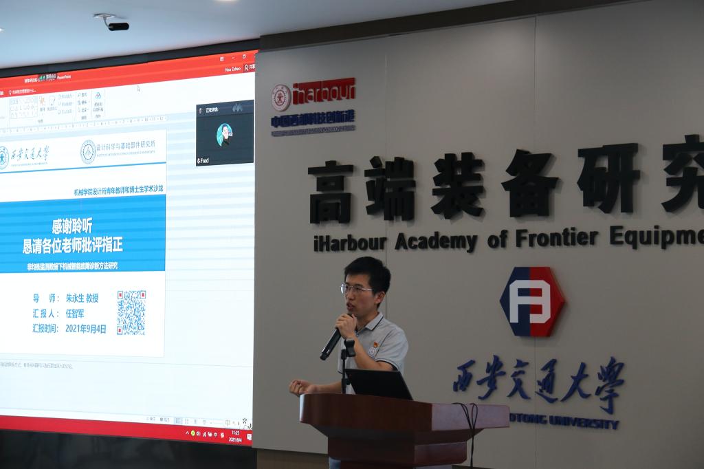 之后,博士研究生周意葱、杨彬、杨浩、任智军、刘坤鹏、潘燕分别就自己的科研工作,做了“装配界面结构-性能一体化设计理论与方法”、“域不对称下的机械装备局部迁移智能诊断方法”、“新型防污剂自分泌表面的制备及其防污减阻机理研究”、“非均衡监测数据下机械智能故障诊断方法研究”、“多波束干涉获得任意阶数涡旋阵列的研究”、“知识与数据联合的油液不确定状态表征方法”的报告。参加沙龙的老师与同学从各自的视角开展深度思想碰撞、频频发问,从问与答中迸发出创新的灵感火花。