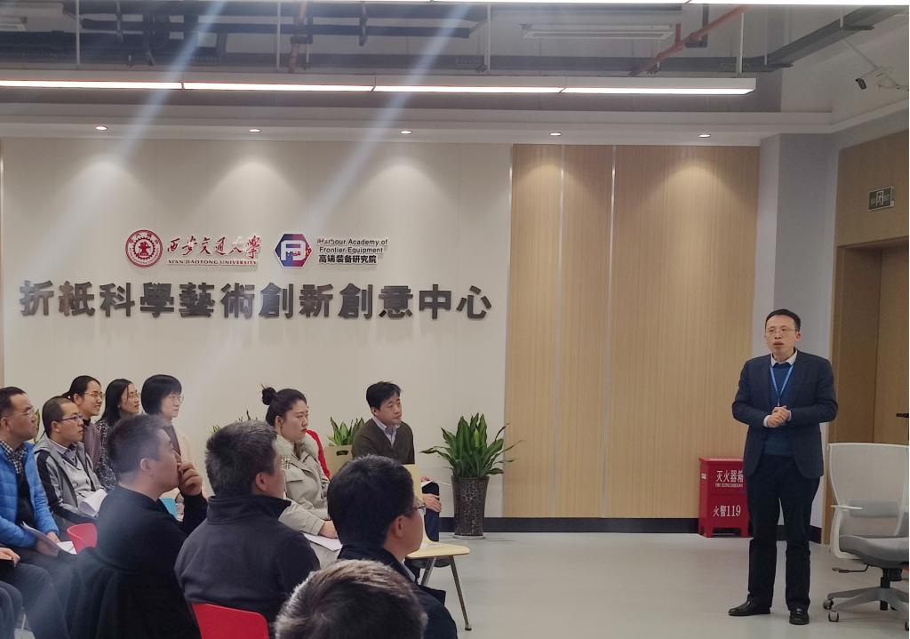 随后是学术报告环节。受陈雪峰院长和陈贵敏教授的邀请,来自航天五院西安分院空间天线技术研究所的马小飞副所长、天津大学陈焱教授、牛津大学由衷教授,先后分享了关于《空间可展开结构及其商业化应用现状》、《厚板折纸》以及《Kinematic Morphing Structures and Metamaterials》的三场精彩的学术报告,其中后两场报告是在线举行。值得一提的是,虽然由衷教授身处英国,与国内有9个小时的时差,他也在当地时间早上6点就加入到线上交流中。