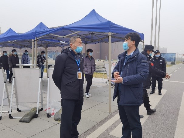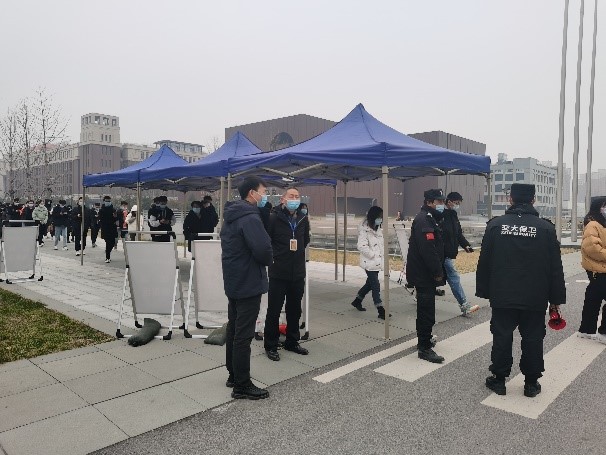 学院党委书记王朝晖、副书记张敏广泛关注疫情形势、关心学生心理健康发展,领导成立党员先锋队。面对疫情,机械学院研工队伍积极响应号召,联防联控,构筑疫情防控的严密防线。考虑到冬天天气寒冷,核酸检测排队时间久,同学们难免会有些携带,忽视“一米线”的要求,机械学院研工队伍不畏寒冷,前往核酸检测排队处督战,指导现场党员先锋队有序引导,保持排队距离,保障检测工作有条不紊、快速推进,于危机中彰显责任与担当。