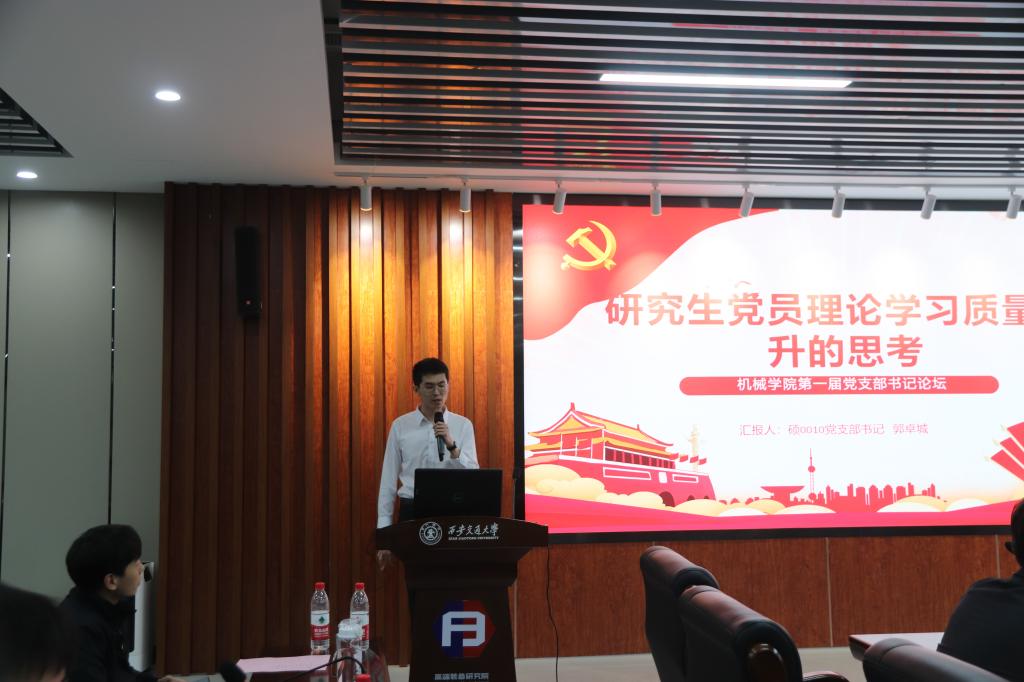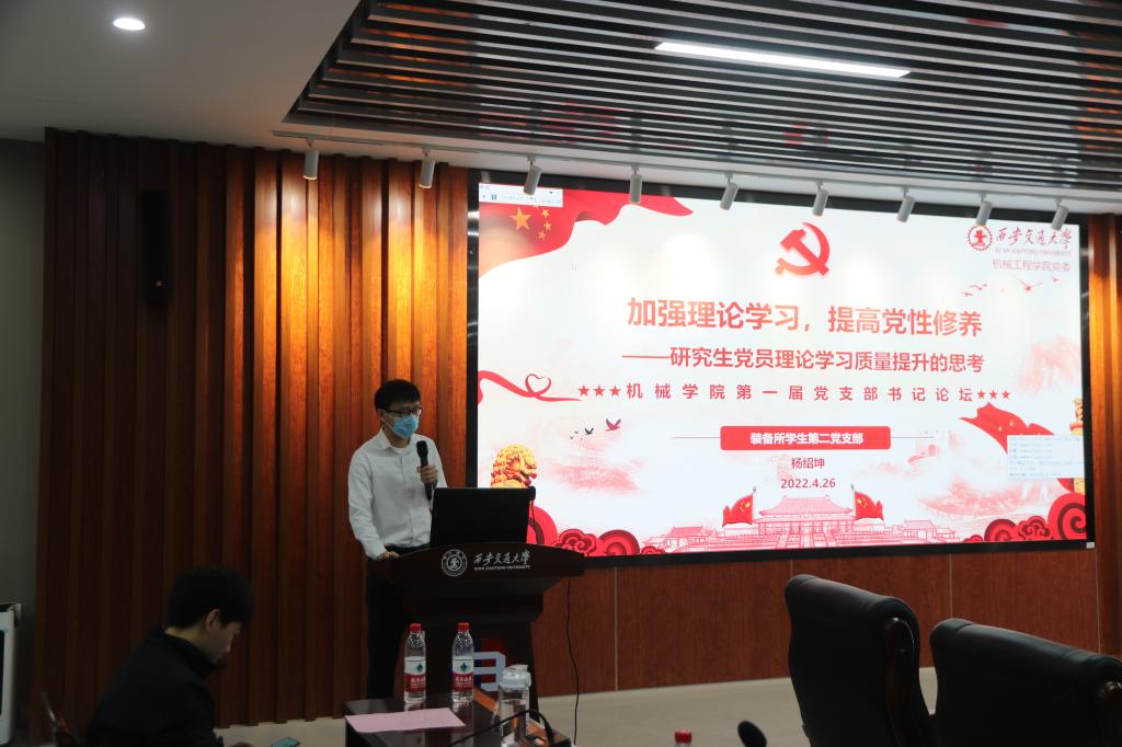 本次论坛以“守正创新建强党支部,砥砺奋进献礼二十大”为主题,围绕后疫情时代党建工作体系构建、党员理论学习质量提升、新时代“党、团、班”一体化建设进行了深入交流。koko体育·(中国)官网党委副书记张敏、西安交通大学党委组织部杨夫腾、西安交通大学党委研工部白天、机械学院研究生辅导员杨江坤、机械学院研究生辅导员苏宇、机械学院团工委代表刘桂蕾、机械学院研究生会代表邓瑞民、机械学院常代会代表上官子彬以及机械学院各研究生党支部书记共同出席此次论坛。论坛由机械学院党建办张宁宇主持。