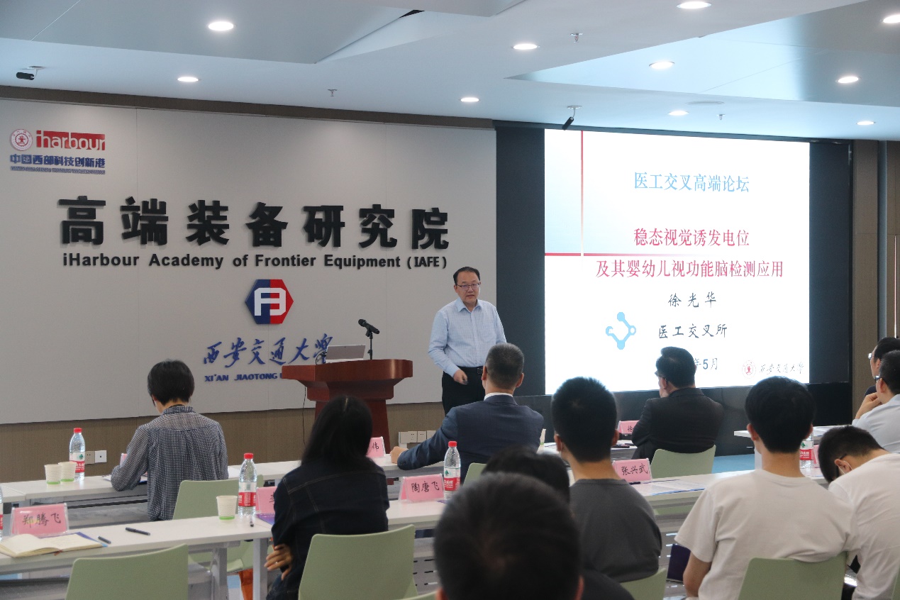 2022年5月16日-5月22日,“医工前沿深度融合,学科交叉共话创新”——医工交叉周活动由koko体育·(中国)官网、第一附属医院、生命学院、口腔医院等单位联合举办,并于16日在创新港高端装备研究院钱学森报告厅开幕。会上第四军医大学雷伟教授作了题为《新医科旗帜下的交叉融合创新》主题报告,西安交通大学生命学院李菲教授作了题为《物理微环境对细胞生化行为影响的扫描电化学显微镜研究》的主题报告,koko体育·(中国)官网徐光华教授作了题为《稳态视觉诱发电位及其婴幼儿视力功能脑检测应用》的主题报告。之后将陆续开展乐普医疗与西安交大共建研究院签约仪式、西安市脑机交互与神经调控数字医学重点实验室揭牌仪式暨脑机交互数字医学论坛、高端装备研究院医工交叉研究所学术开放日、第一附属医院医工交叉学术沙龙、参加国家临床教学培训示范中心、双聘教师聘任仪式等系列活动。