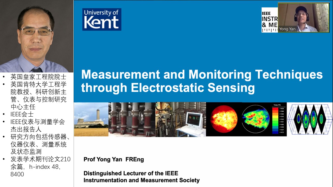 Yong Yan教授作了题为“Measurement and monitoring techniques through electrostatic sensing”学术报告,回顾了工业测量和状态监测应用中静电传感器的原理、制作与测试方法,介绍了传感器设计及信号处理算法的最新进展,以及在工业测试中的实际应用。