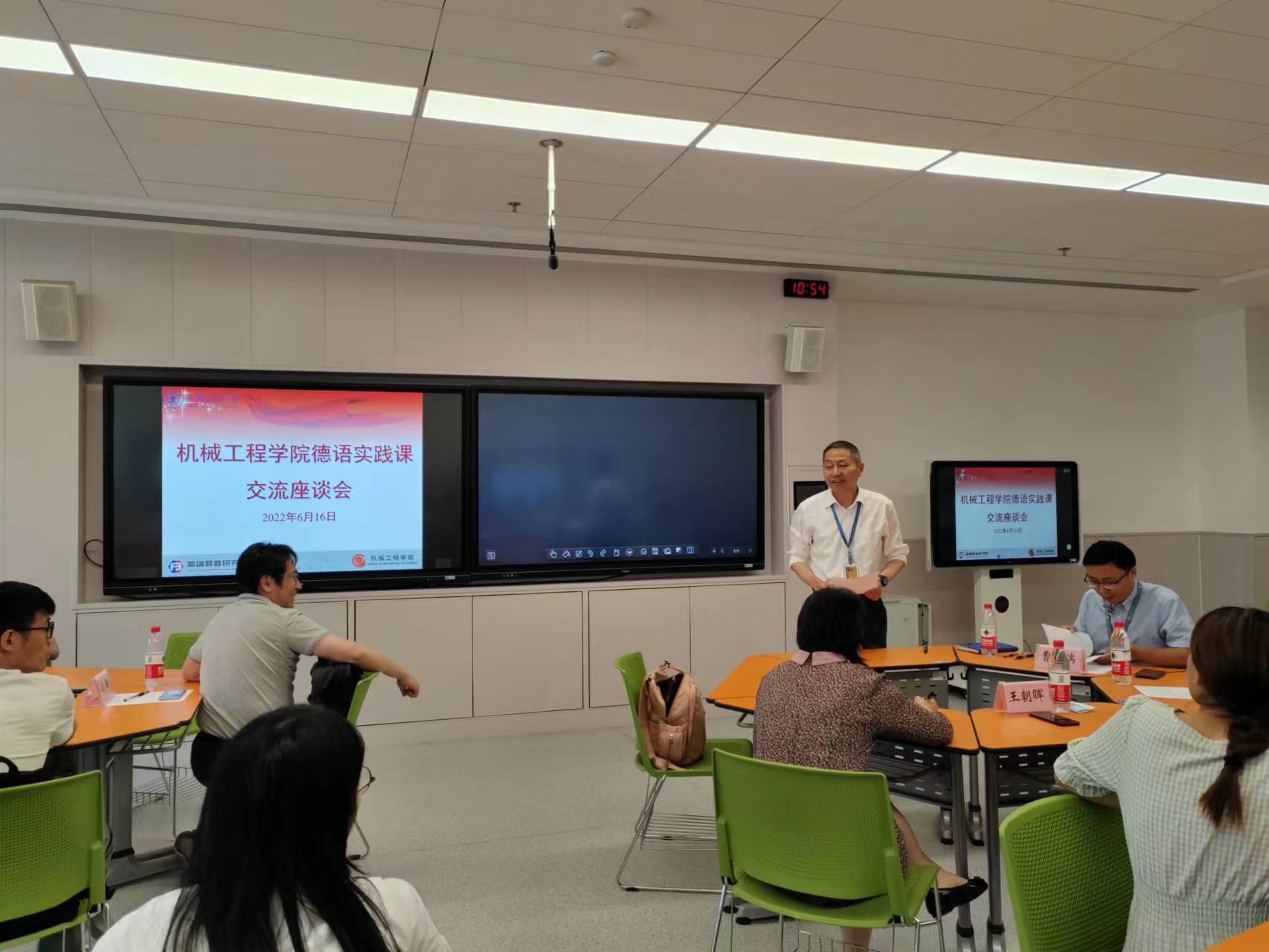 王朝晖表示交大的研究生应该走在科技的前沿,应该主动掌握一门第二外语。第四次工业革命是一次全方位变革,它的显著特点是各个行业、领域间的融合。而德国是拥有较强工业基础的制造业大国,德国机械工业技术发达,机械相关的产品研发和成果孵化以及使用备受全球关注。为了有效助推我院研究生的学习与科研,获取并阅读机械领域德文原文资料,学习德语就显得迫在眉睫且至关重要。