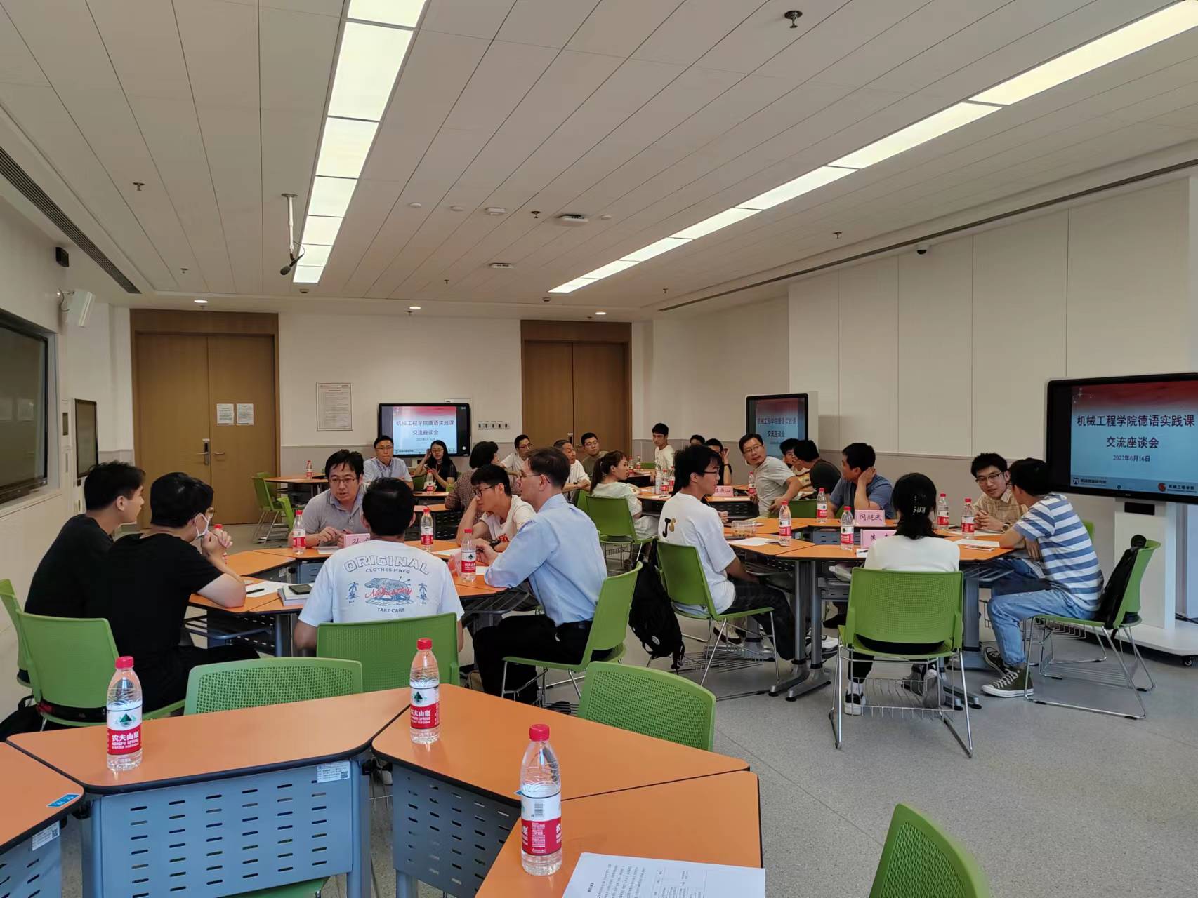 6月16日上午,koko体育·(中国)官网研究生德语实践课交流座谈会在创新港校区2-3004举行。学院分党委书记王朝晖、德裔外教Sebastian Degen、机器人所副研究员孙铮、德语实践课授课教师何小超以及学院多名留学德国的教师、选修课程研究生30余人参加座谈。院长助理曹宏瑞主持会议。