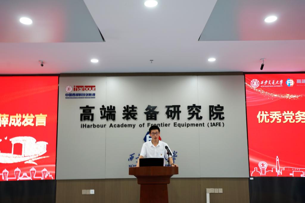 设计所博士生第二党支部书记侯泽昊同志分享了支部“党建树品质,科研报家国,宣传凝力量,服务暖人心”的四维建设理念及支部建设亮点方式,并围绕工作目标制定、组织生活会主题明确、组织生活会创新改革,多层次为全体同志们的未来支部建设拓宽了思路。侯泽昊同志表示,大家要建强自身,服务大众,做西迁精神新传人。