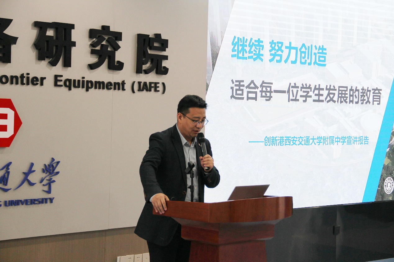 “少年强则国强”,少年教育是当今家庭迫切关心、关注的话题。依托创新港而建的创新港西安交大附属中学,是西安市教育局与西安交通大学联手探索机制体制创新的重要举措,首创基础教育合作办学“双直属”新模式,既享受公办学校政策支持,又发挥高校资源调配优势,开启校地合作、创新发展。会上,西安交大附中副校长、西安市创新港中学执行校长窦小刚从硬件条件、名师引领、教育教学三个方面介绍了创新港西安交大附属中学的基本情况,他表示“新港附中是一所能在渭滨河畔求新知,生态湿地塑身心,大树森林育新苗的生态中学,其将继续坚持“努力创造适合每一位学生发展的教育”的理念,将资源最大限度的向服务学生倾斜,建设高标准、国际化、智慧化中学”。