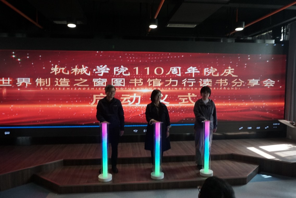 启动仪式分为三项,第一项是读书分享会点亮仪式。仪式由机械学院党委副书记张敏、机械学院党委委员张新功、国际教育学院司晶老师成功点亮,至此,“世界制造之窗”图书馆力行读书分享会正式启动。