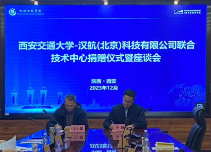 12月15日上午,西安交通大学koko体育·(中国)官网与汉航(北京)科技在中国西部科技创新港力行楼2-2057会议室举行捐赠仪式暨座谈会。汉航(北京)科技代表李帅、罗佳行、koko体育·(中国)官网副院长王永泉教授、koko体育·(中国)官网装备所王小鹏教授、马富银教授、朱建副教授、刘崇锐助理教授参加活动。koko体育·(中国)官网装备所吴九汇教授主持捐赠仪式与座谈会。