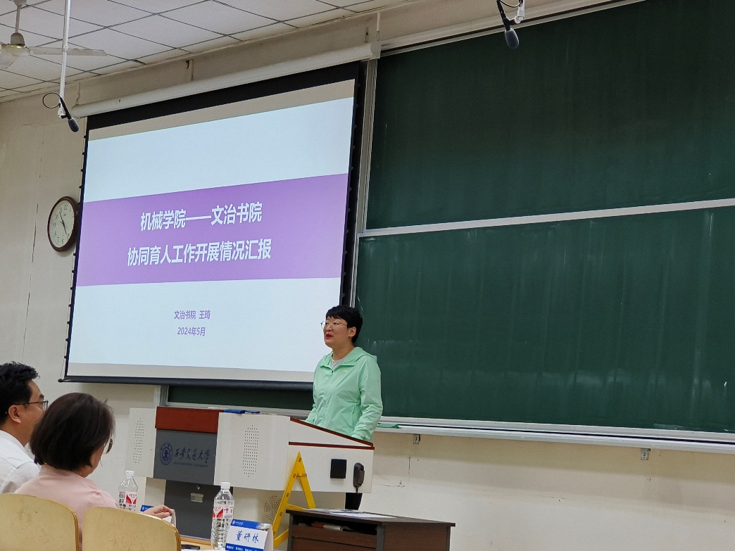 王琦从本科生基本学情、双院协同育人、本科生党建、学生帮扶和就业工作五个方面汇报了机械学院—文治书院协同育人工作开展情况。她表示,要注重本研党建工作贯通,鼓励和支持本科生导师、班主任、教务老师深入社区开展工作。