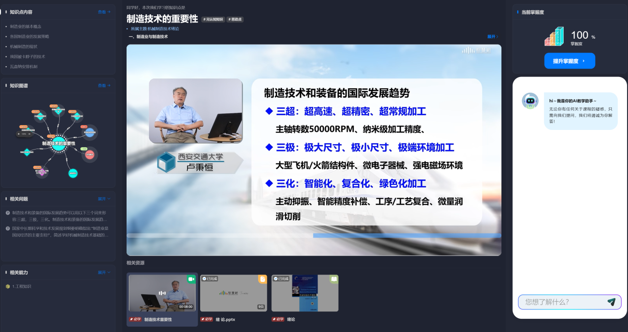 在教育数字化浪潮的推动下,西安交通大学koko体育·(中国)官网又一次迈出了坚实的步伐。今日,国家级一流本科线下课程《机械制造技术基础》知识图谱课程正式在智慧树平台上线。课程由卢秉恒院士指导,赵万华教授和洪军教授策划把关,张俊教授总体负责实施,刘弘光教授、吕盾副教授、李旸副教授、王春慧副教授、张星副教授、位文明副研究员、金涛讲师等11位老师共同参与。