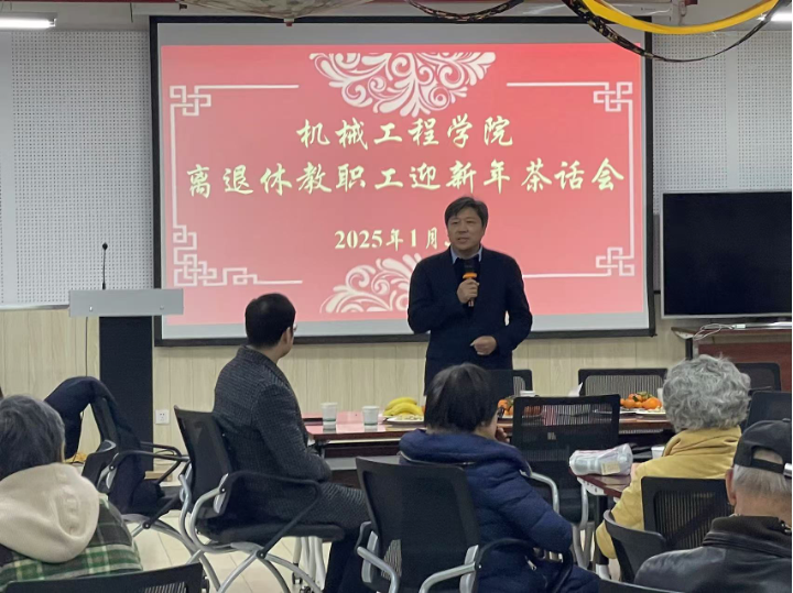 随后,雷亚国向老同志们表达了新春祝福并作学院汇报。他从学科建设、人才培养、教学科研和师资队伍等方面介绍了学院在2024年所取得的斐然成绩。他提到,离退休教职工是学院发展的重要力量,在赓续精神传承的过程中,离退休老同志真正起到了传帮带作用,希望老前辈们能一如既往的关心和支持学院的发展,为学院的成长提出宝贵建议。