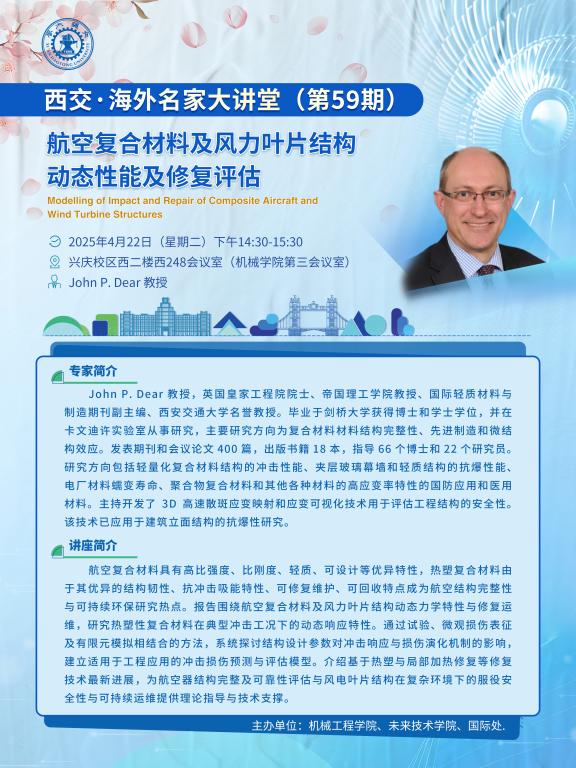 西交·海外名家大讲堂(第59期)-帝国理工大学John Dear院士讲座通知